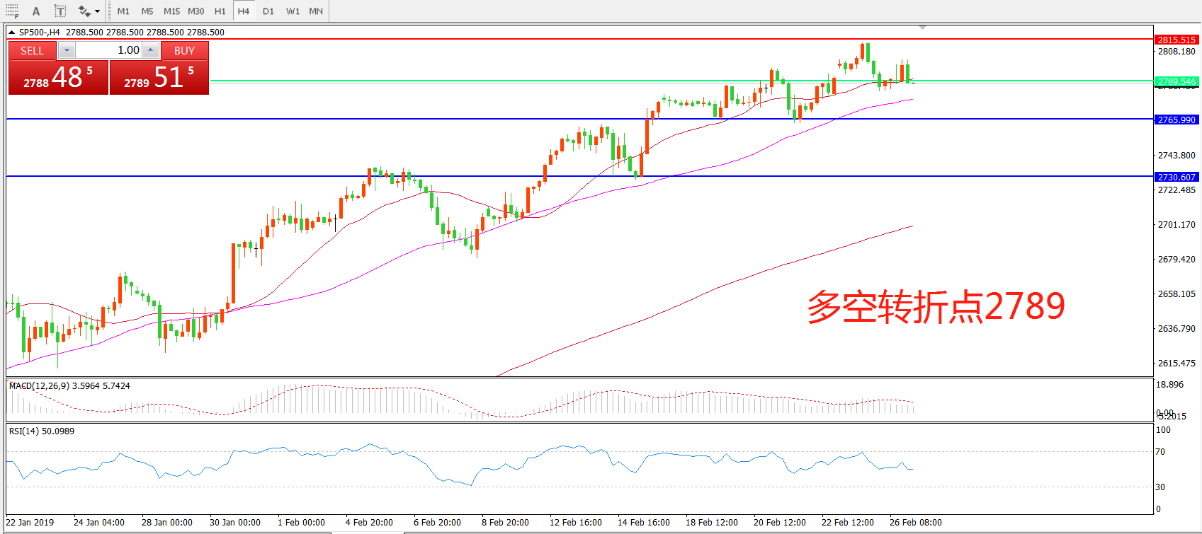 交易策略:在2789之上看涨,目标2815 2860