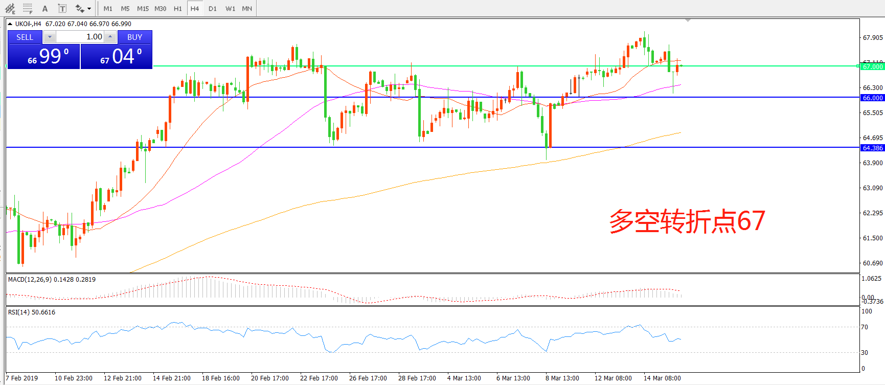 多空转折点:67.00
