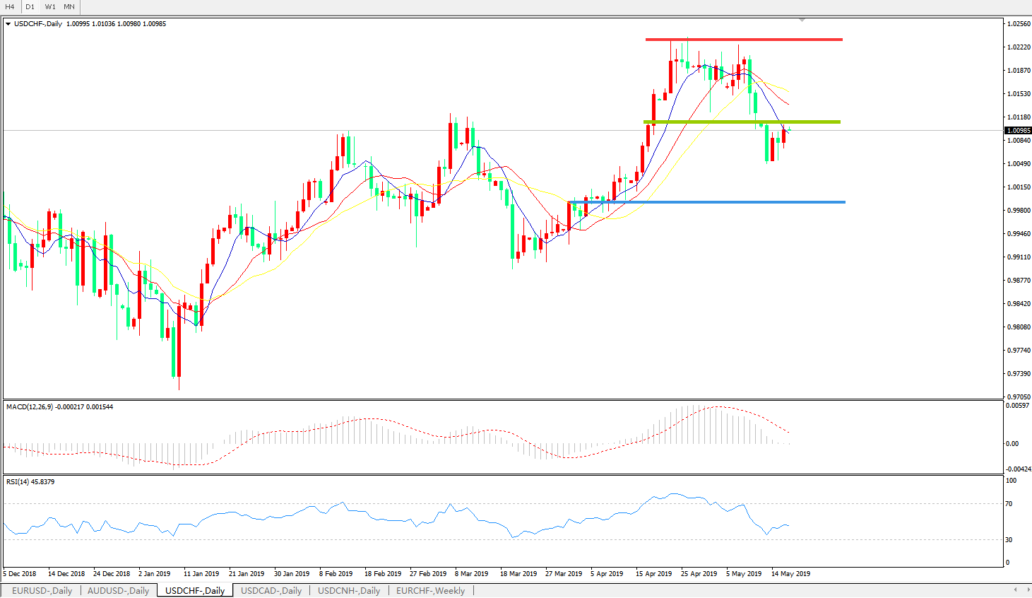 美元兑瑞郎USDCHF 日线图:
