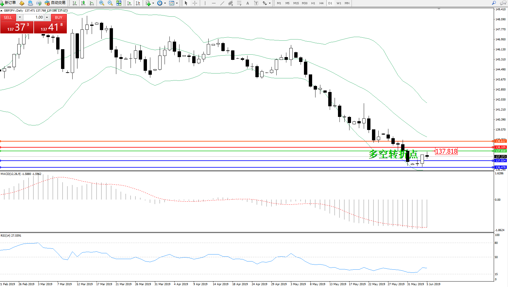 交易策略:137.818下方看跌,目标137.024136.478