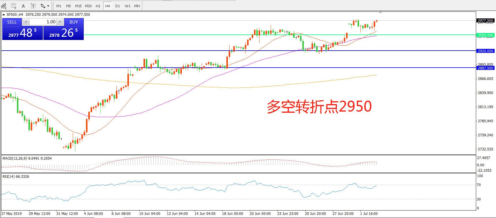 多空转折点:2950.00