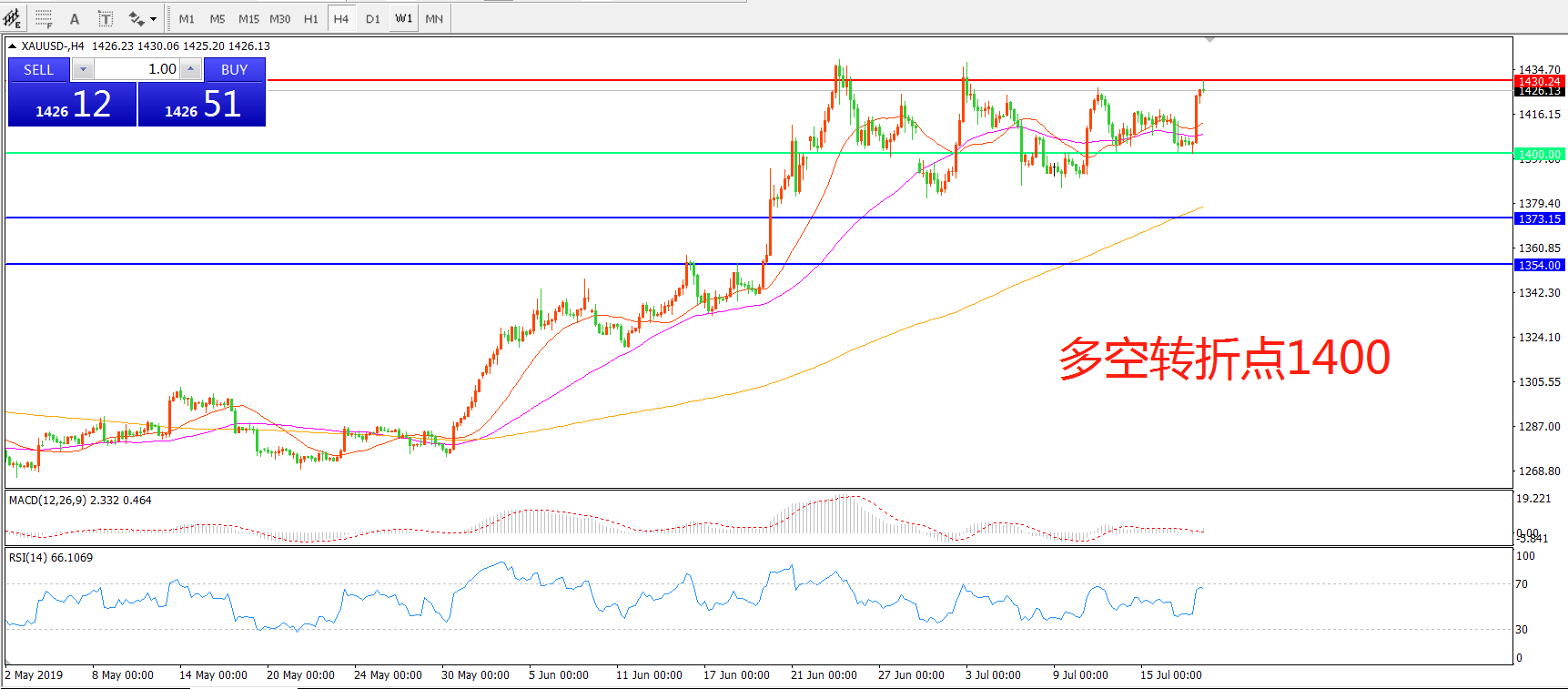 多空转折点:1400.00