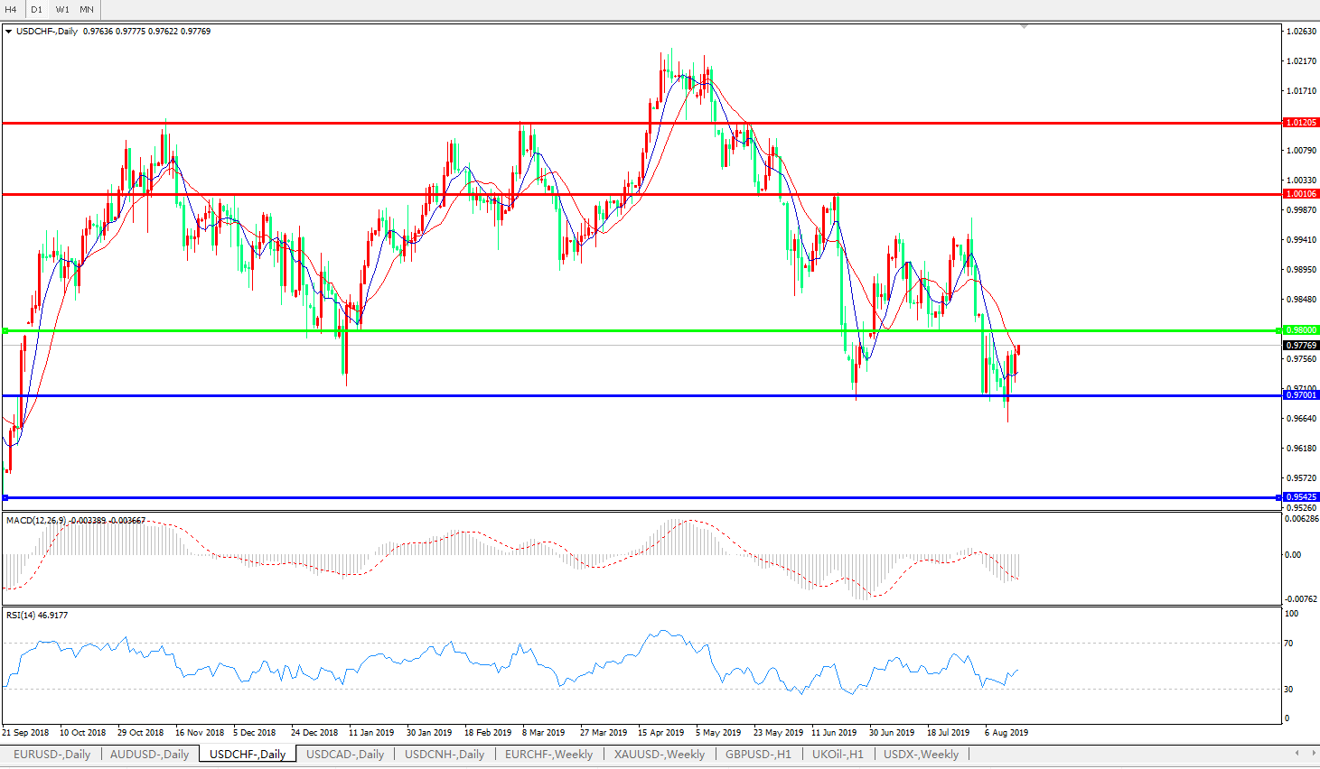 美元兑瑞郎USDCHF 日线图: