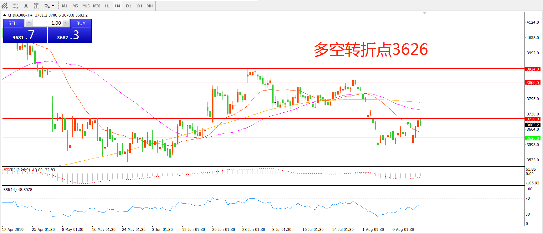 多空转折点:3626.00