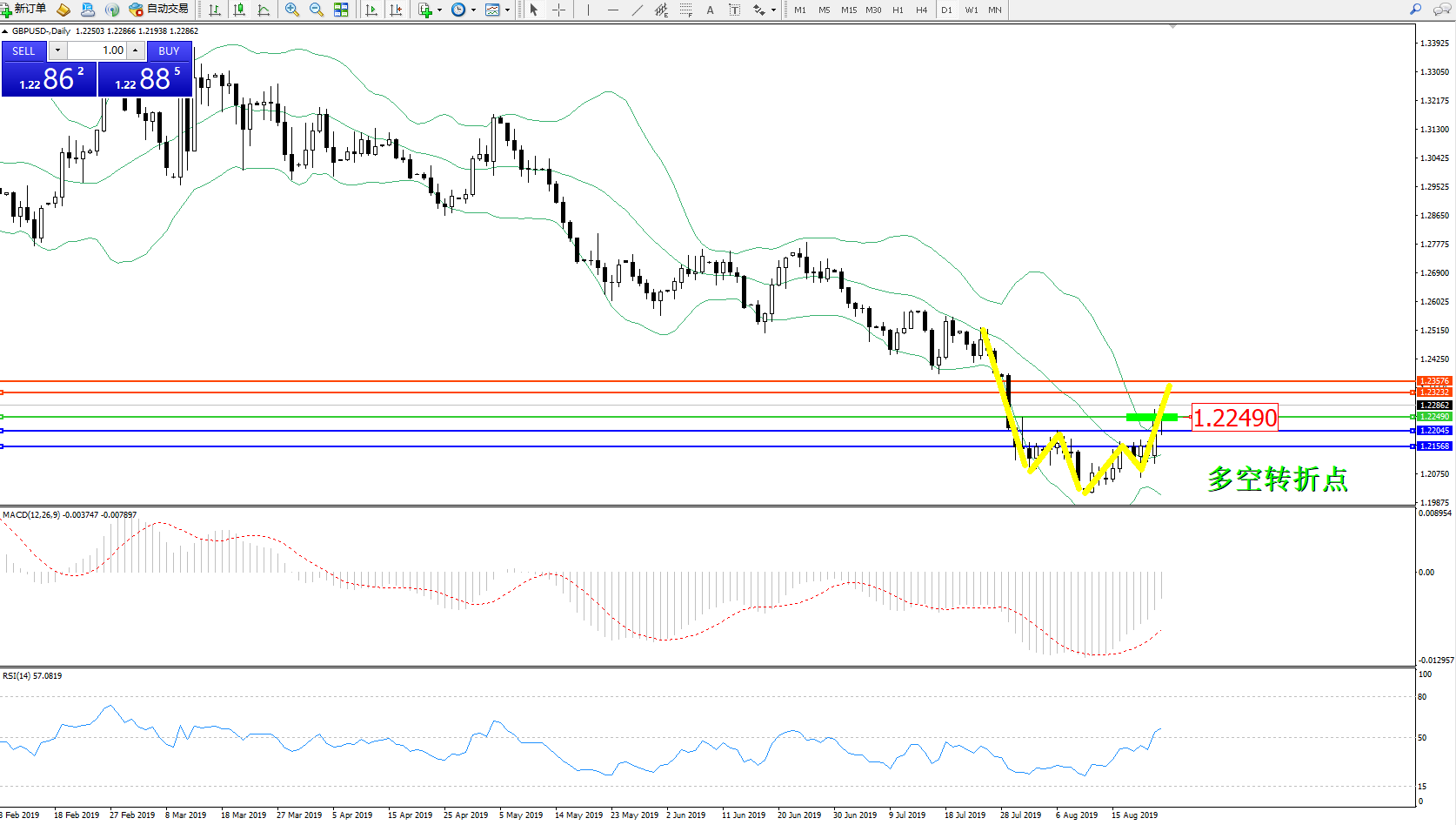 交易策略:1.22490上方看涨,目标1.232321.23576