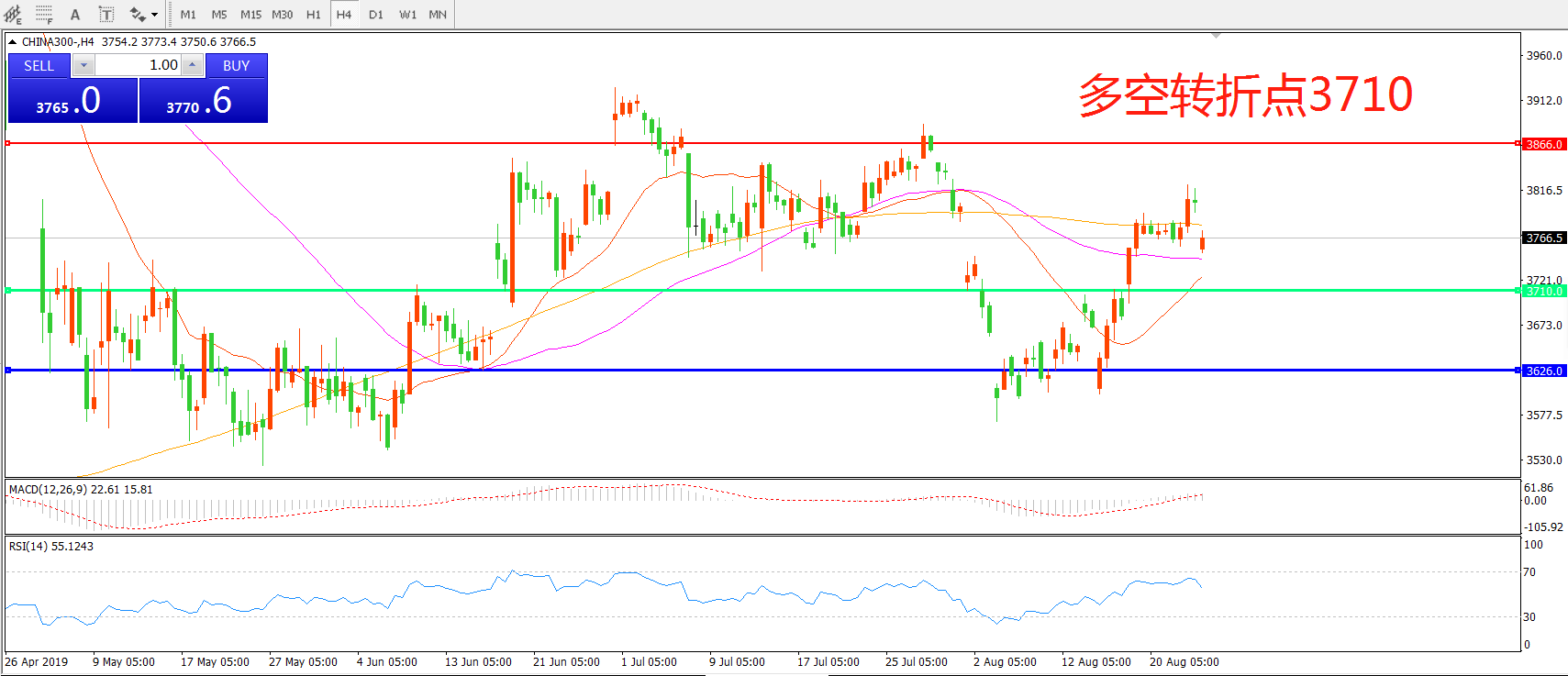 多空转折点:3710.00