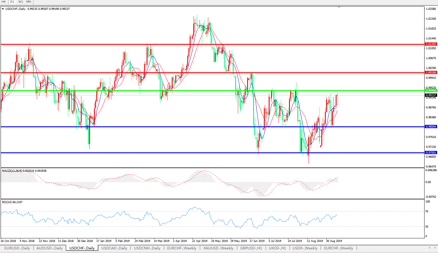 美元兑瑞郎USDCHF 日线图: