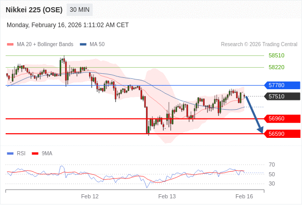 在 57780 之下,看跌,目标价位为 56960 ,然后为 56590 。
