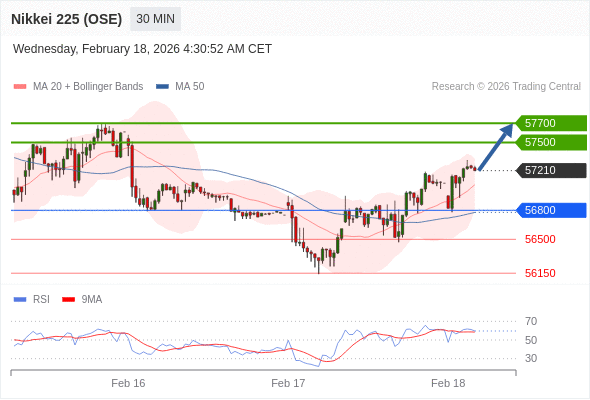 在 56800 之上,看涨,目标价位为 57500 ,然后为 57700 。