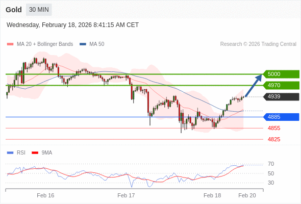交易策略: 在 4885 之上,看涨,目标价位为 4970 ,然后为 5000 。