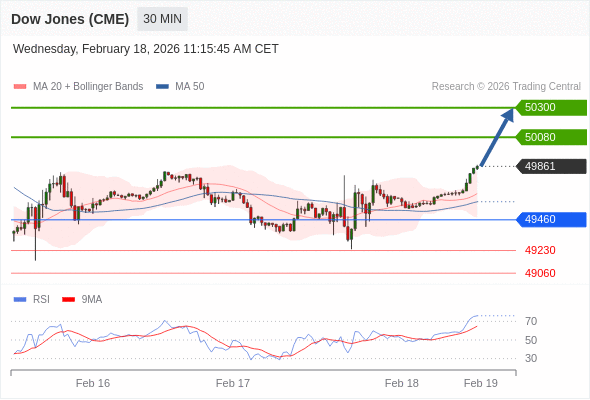 在 49460 之上,看涨,目标价位为 50080 ,然后为 50300 。