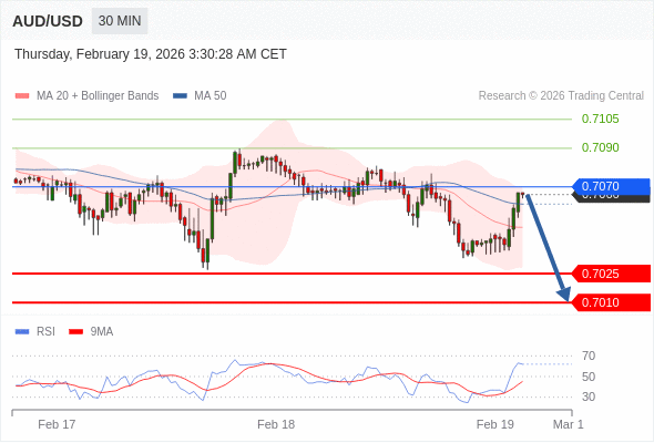 在 0.7070 之下,看跌,目标价位为 0.7025 ,然后为 0.7010 。