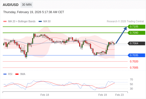 在 0.7035 之上,看涨,目标价位为 0.7090 ,然后为 0.7105 。
