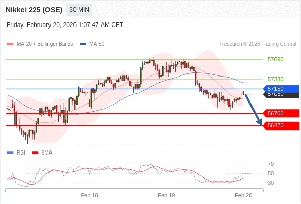 交易策略: 在 57150 之下,看跌,目标价位为 56700 ,然后为 56470 。