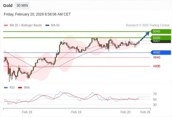 在 4960 之上,看涨,目标价位为 5020 ,然后为 5045 。