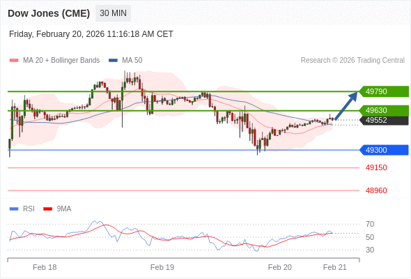 在 49300 之上,看涨,目标价位为 49630 ,然后为 49790 。