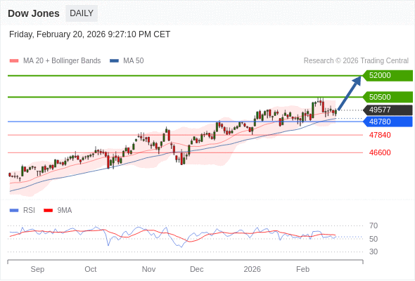 Dow Jones 短线: 看涨。