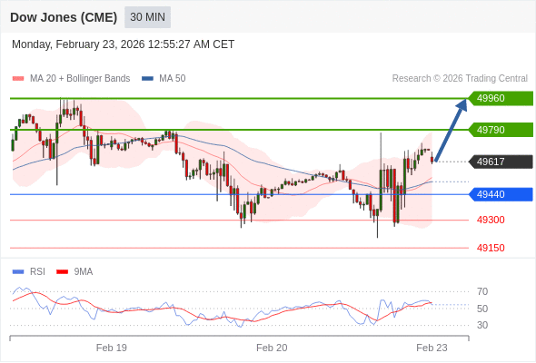 在 49440 之上,看涨,目标价位为 49790 ,然后为 49960 。