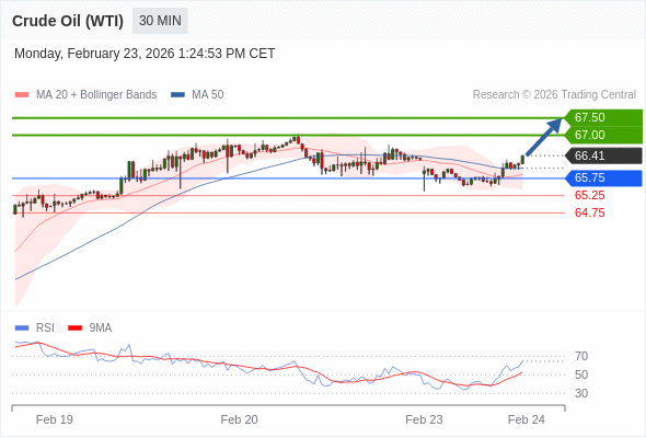 在 65.75 之上,看涨,目标价位为 67.00 ,然后为 67.50 。