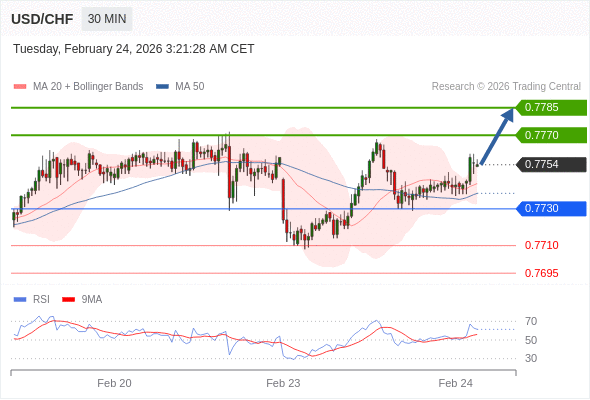 在 0.7730 之上,看涨,目标价位为 0.7770 ,然后为 0.7785 。