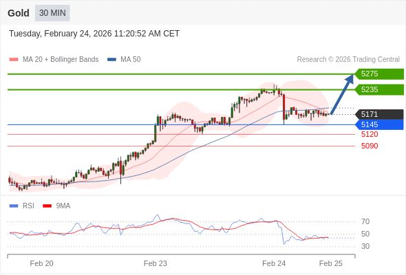 在 5145 之上,看涨,目标价位为 5235 ,然后为 5275 。