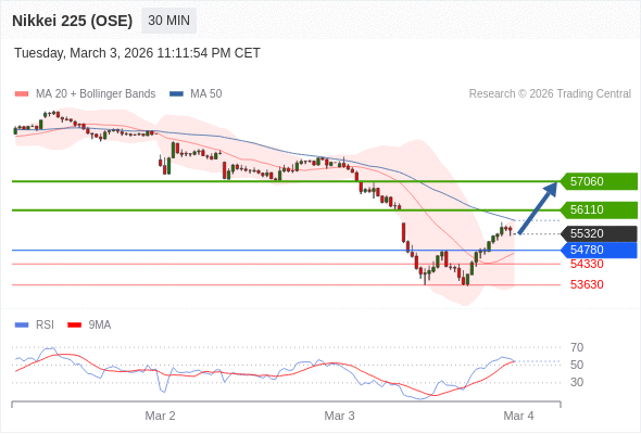 交易策略: 在 54780 之上,看涨,目标价位为 56110 ,然后为 57060 。