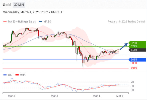 黄金现货 当日内: 目标为5225。