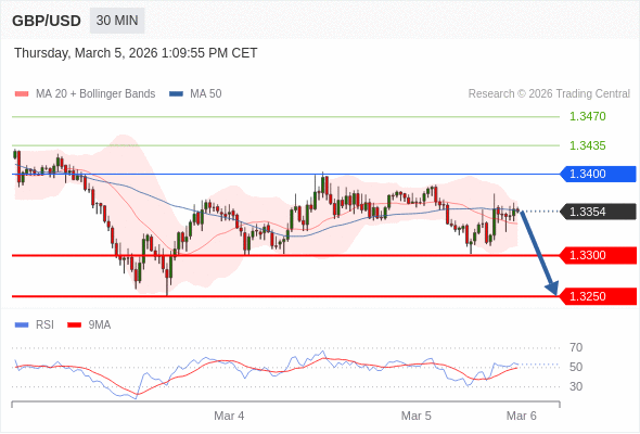 在 1.3400 之下,看跌,目标价位为 1.3300 ,然后为 1.3250 。