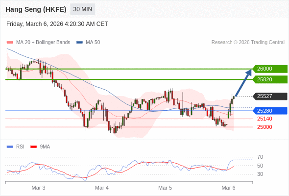 在 25280 之上,看涨,目标价位为 25820 ,然后为 26000 。