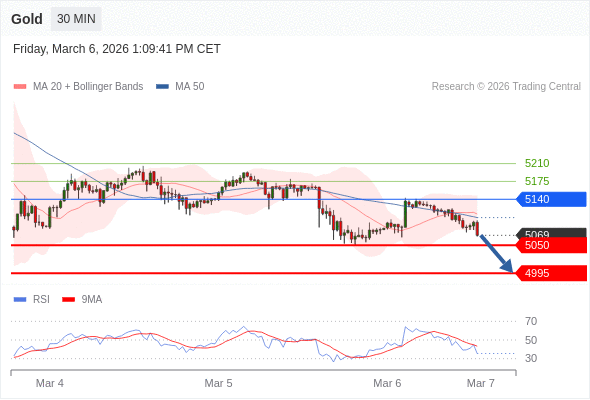 在 5140 之下,看跌,目标价位为 5050 ,然后为 4995 。