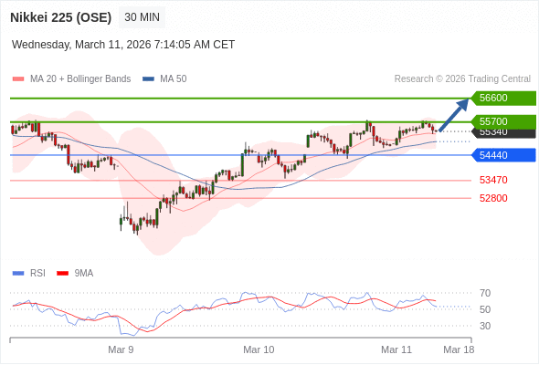 在 54440 之上,看涨,目标价位为 55700 ,然后为 56600 。