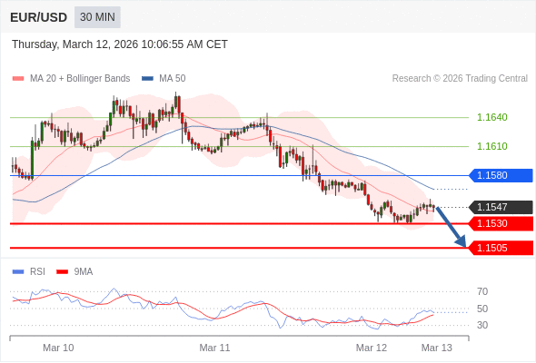 在 1.1580 之下,看跌,目标价位为 1.1530 ,然后为 1.1505 。