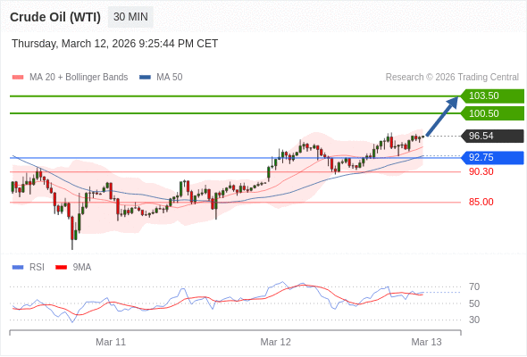 在 92.75 之上,看涨,目标价位为 100.50 ,然后为 103.50 。