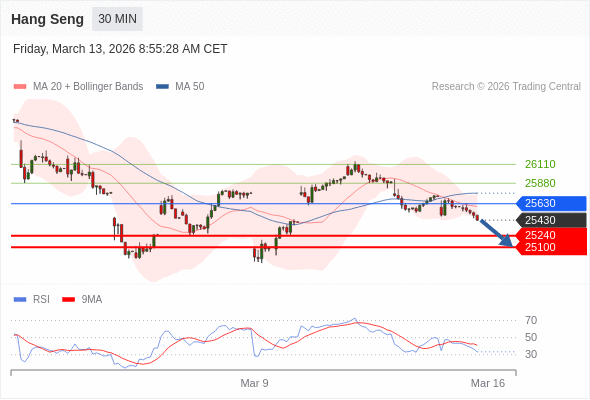 恒生指数 当日内: 期待25240。