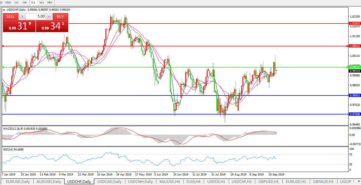 美元兑瑞郎USDCHF 日线图: