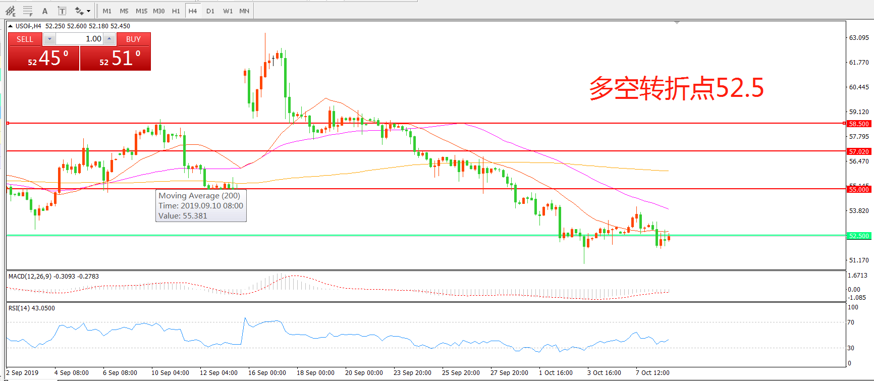 多空转折点:52.50