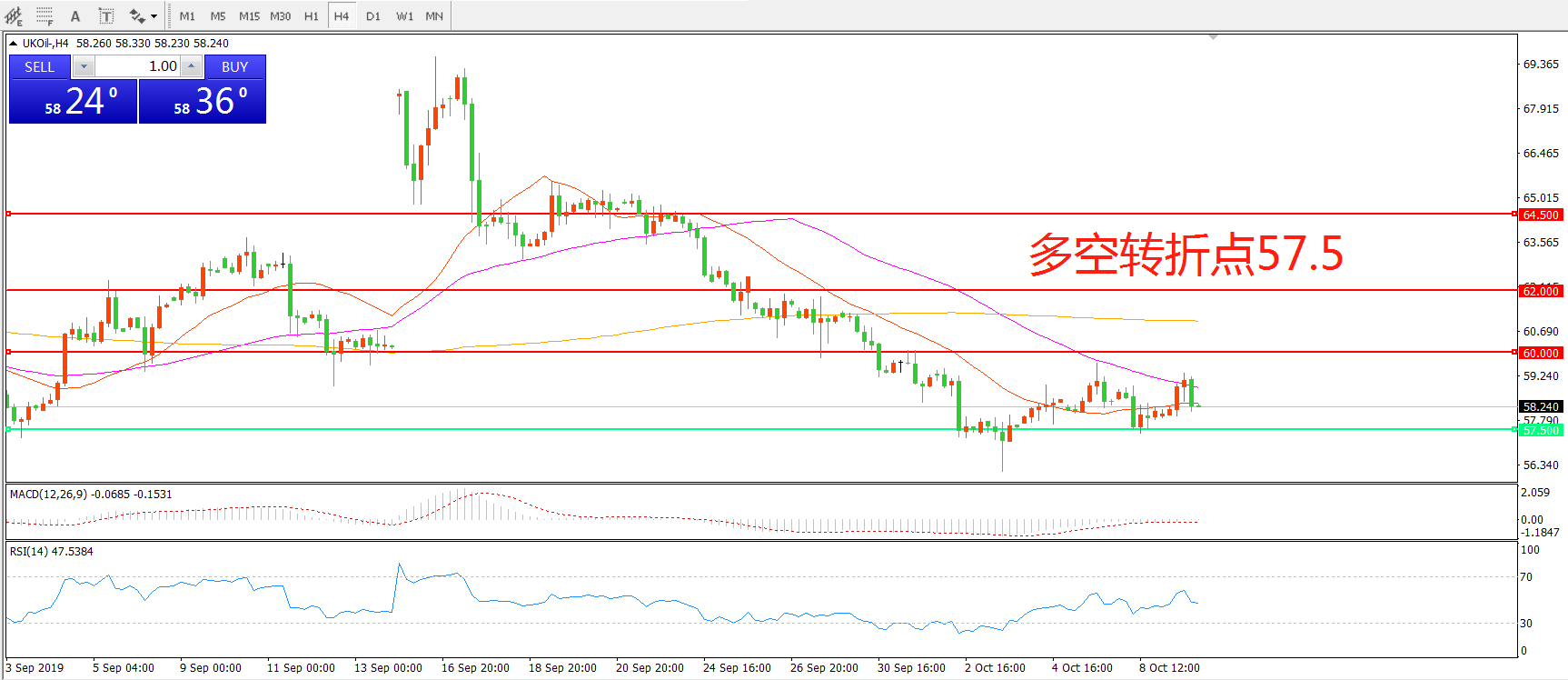 多空转折点:57.50