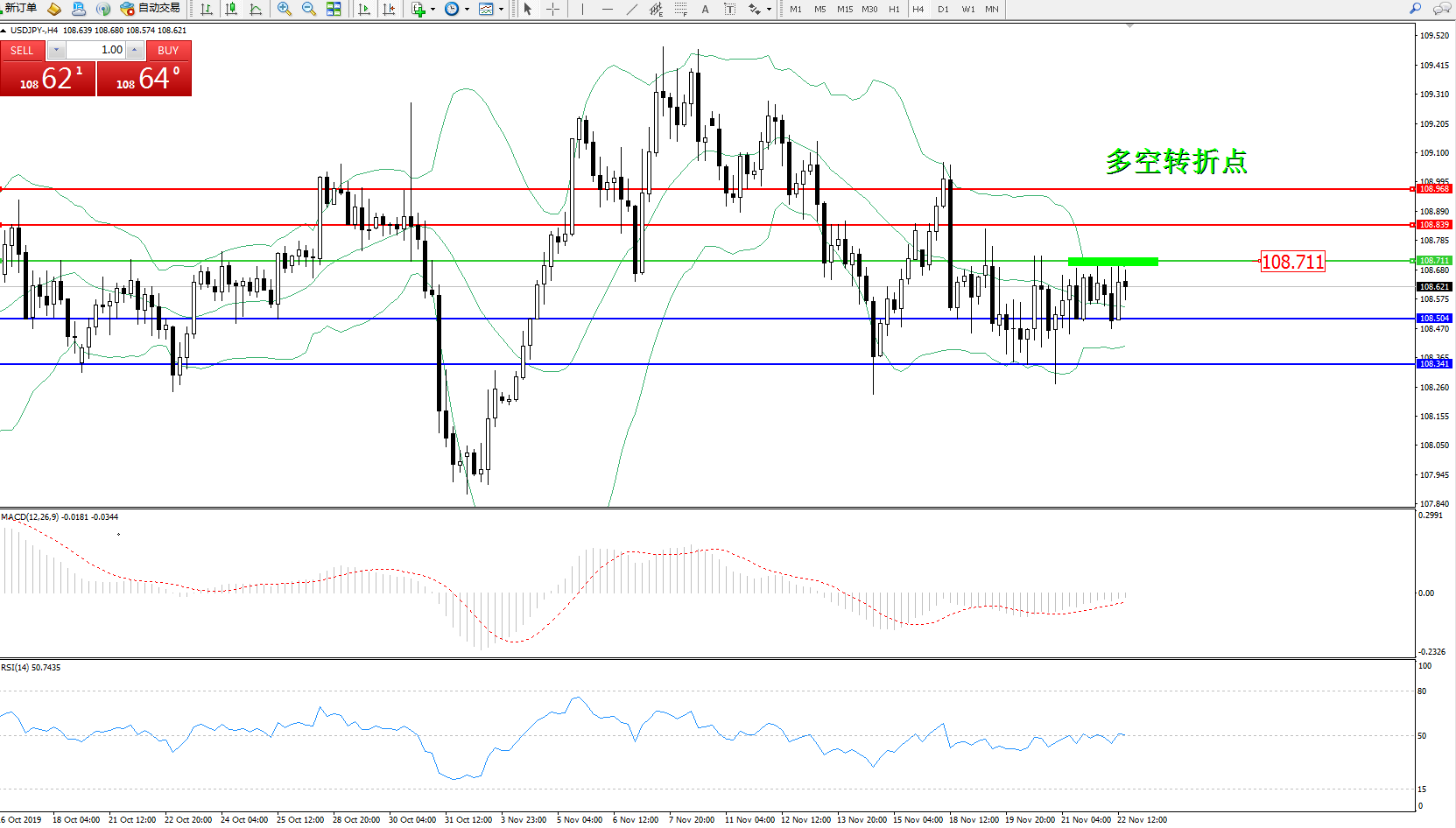 备选策略:108.711上方看涨,目标108.839108.968