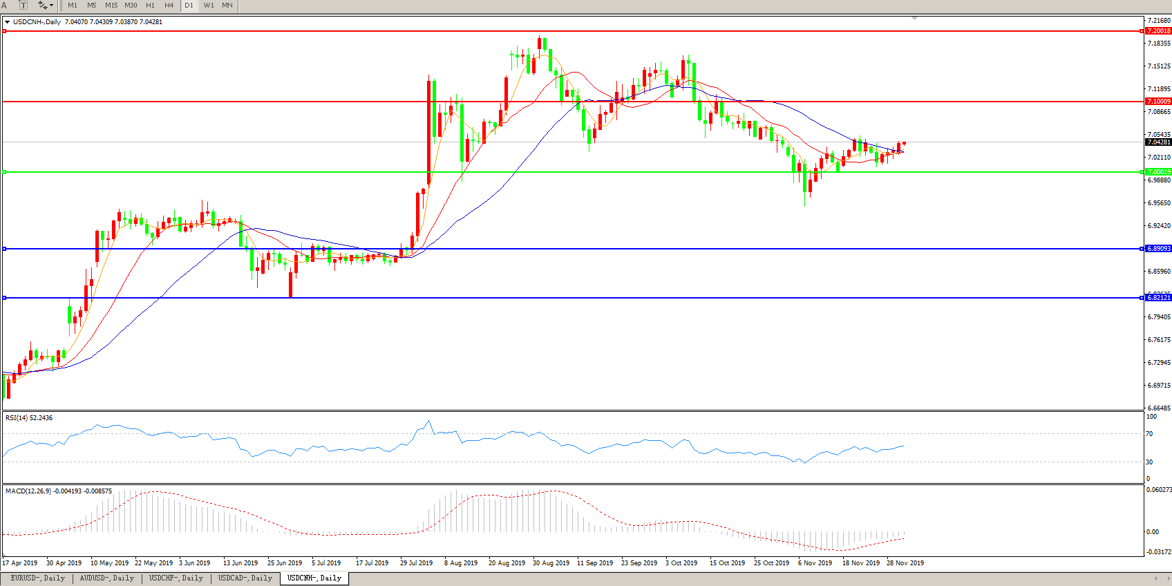 交易策略: 在7.0000之上,看涨,目标价位为7.1000,然后为7.2000。