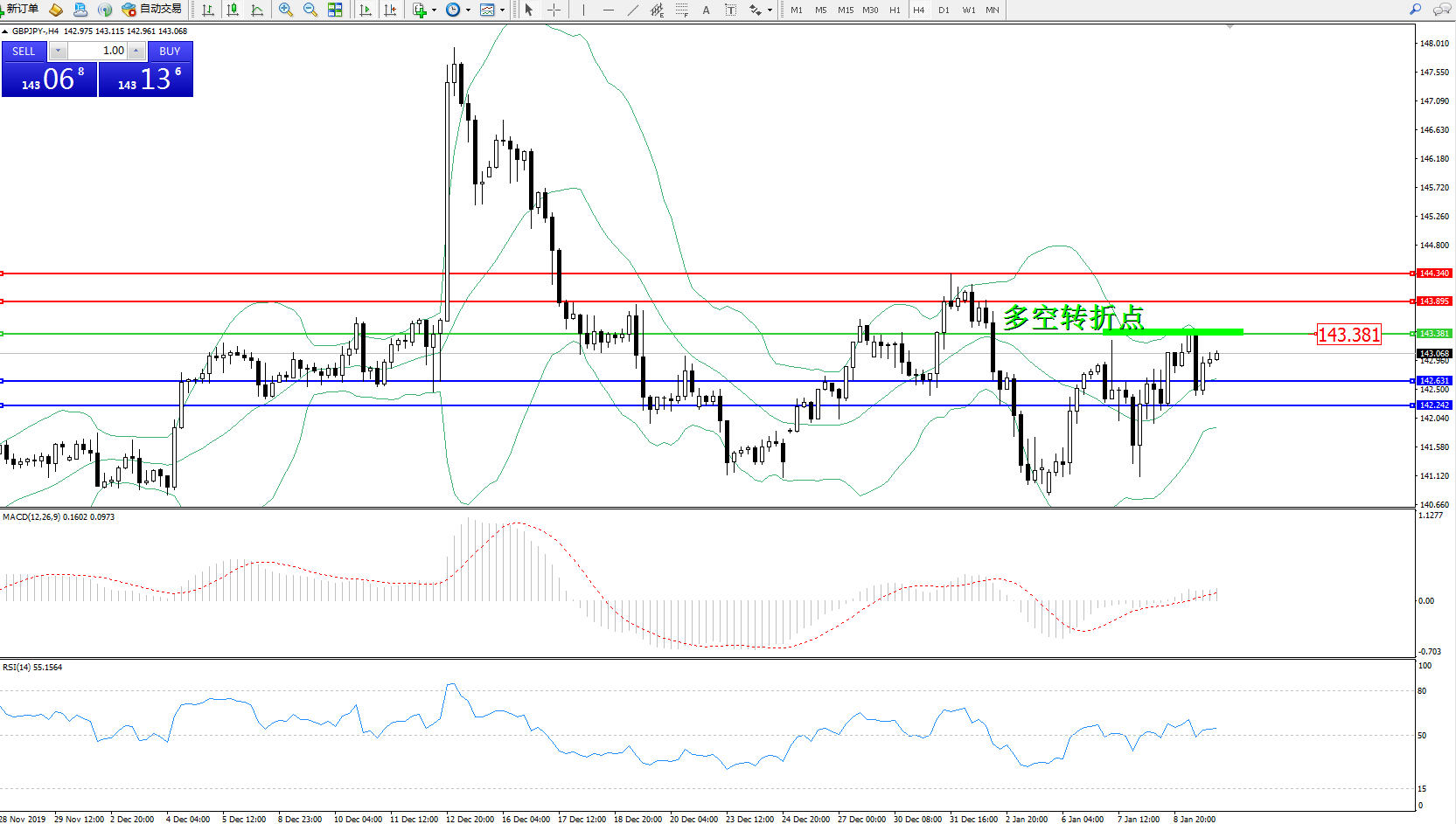 交易策略:143.381下方看跌,目标142.631142.242