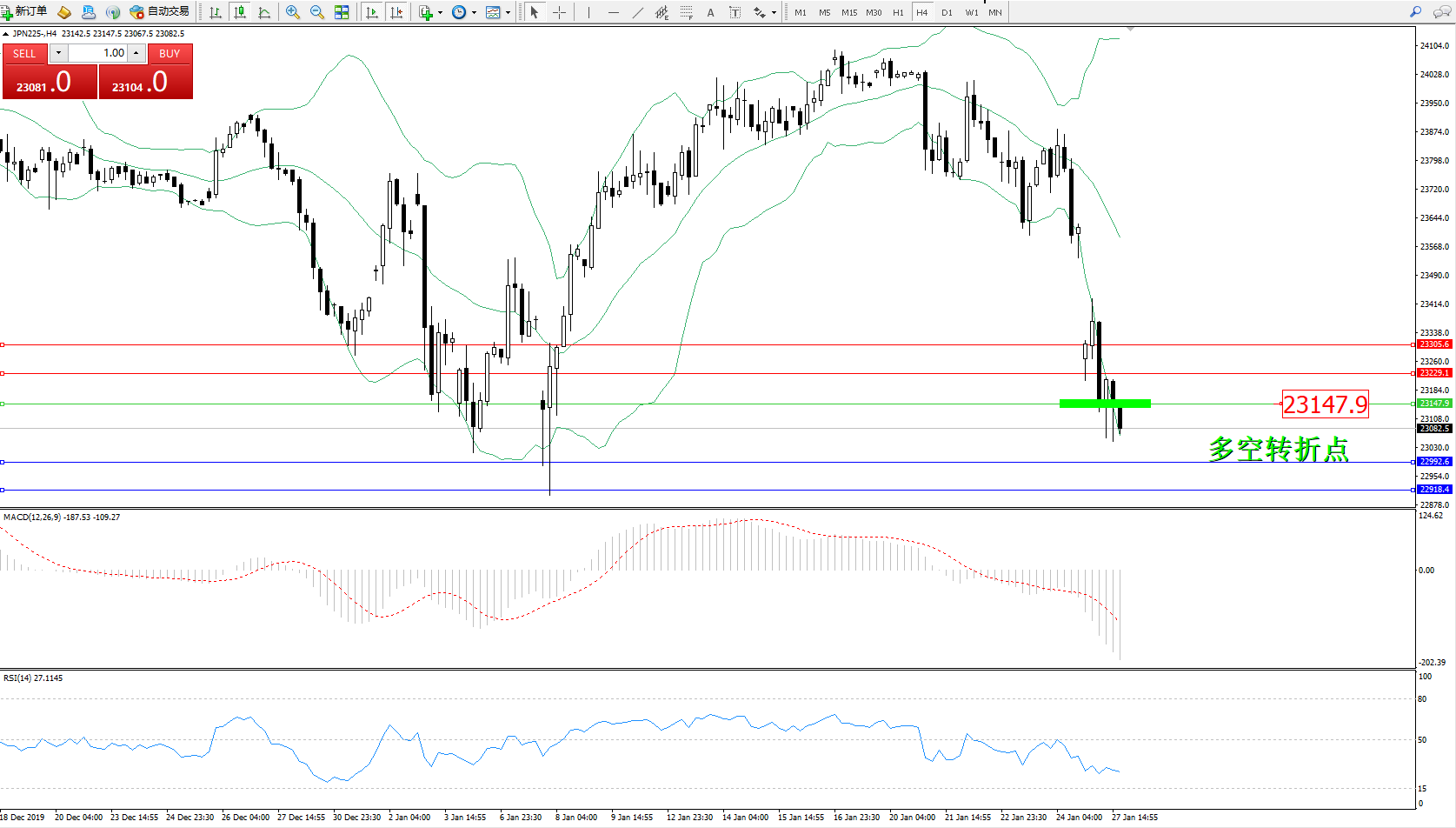 日经225指数127日(周一)收盘下跌508.68点,跌幅2.13%,报23318.50点。日内亚洲多地金融市场仍因春节假期休市,仍在交易中的日本股市则重挫逾2%,而美股股指期货在盘前也跳跌1%,资金因此悉数流入避险资产领域。而在突发“黑天鹅”事件影响下,美联储本周政策决议措辞将存在相当大的不确定性,这也令美元指数走势承压;日本央行委员原田泰的任期将于325日结束,日本首相安倍晋三将于周二宣布接替日本央行委员原田泰的提名人选。