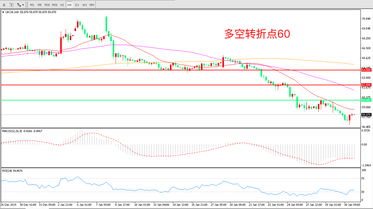 交易策略:在60.00之下看跌,目标57.00 55.00