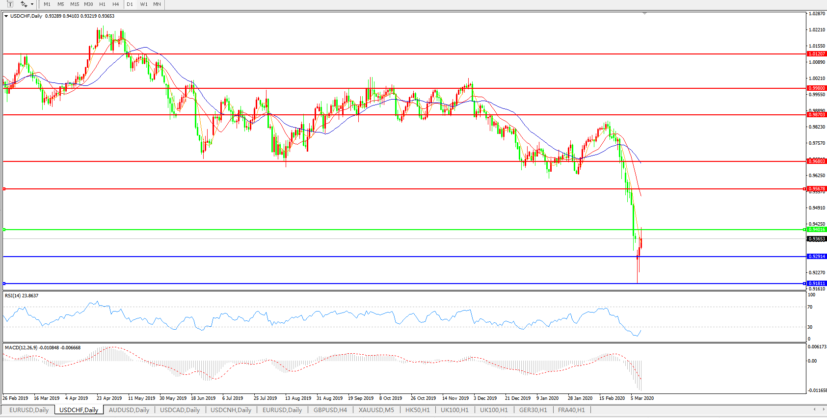 美元兑瑞郎USDCHF 日线图: