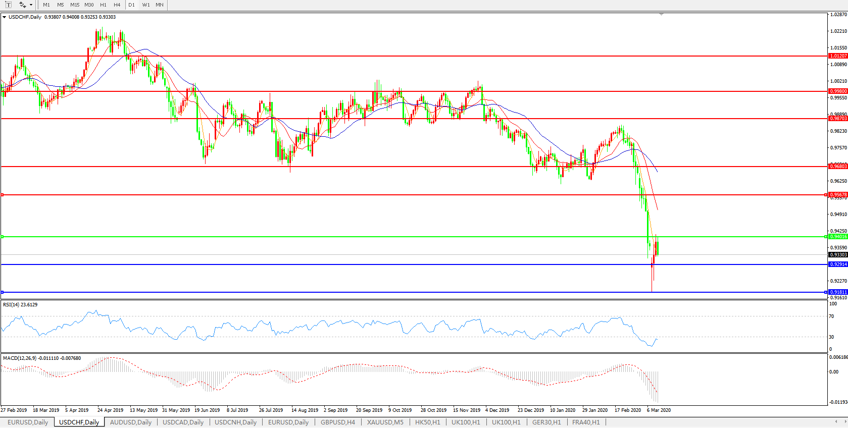美元兑瑞郎USDCHF 日线图: