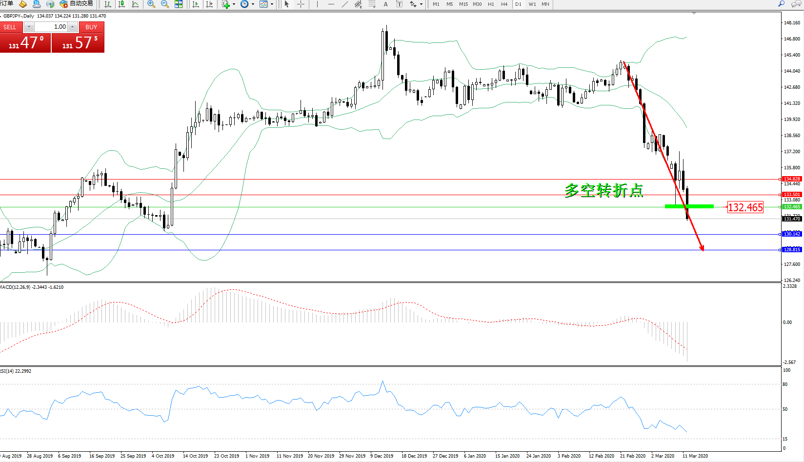 交易策略:132.465下方看跌,目标130.142、128.815