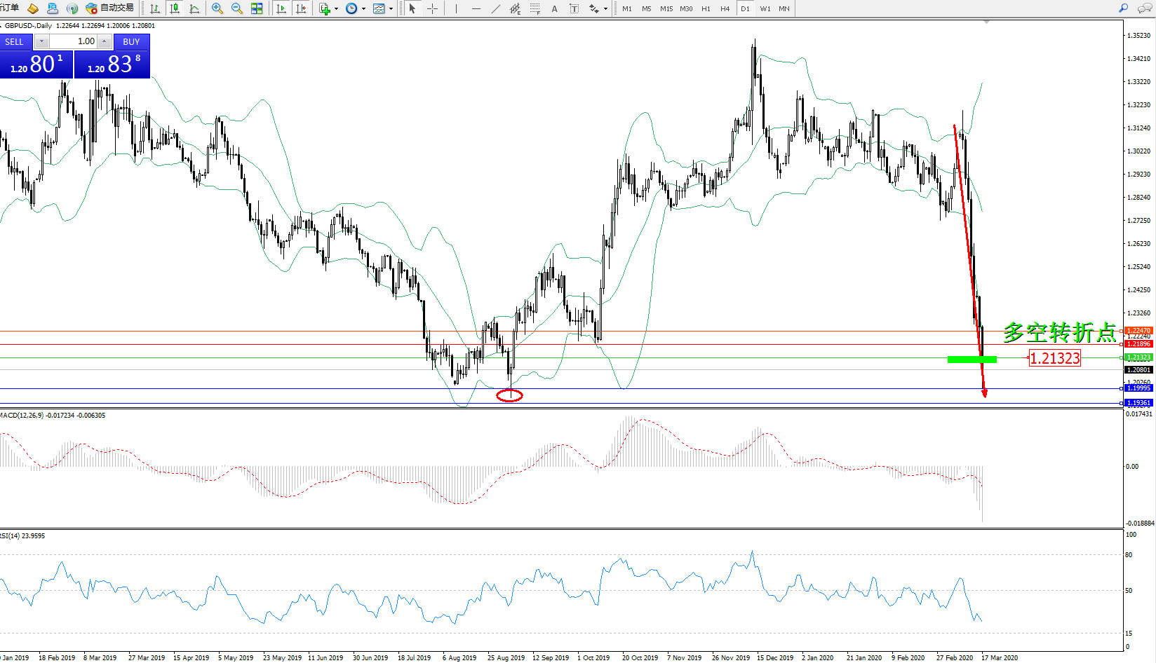 交易策略:1.21323下方看跌,目标1.199951.19361