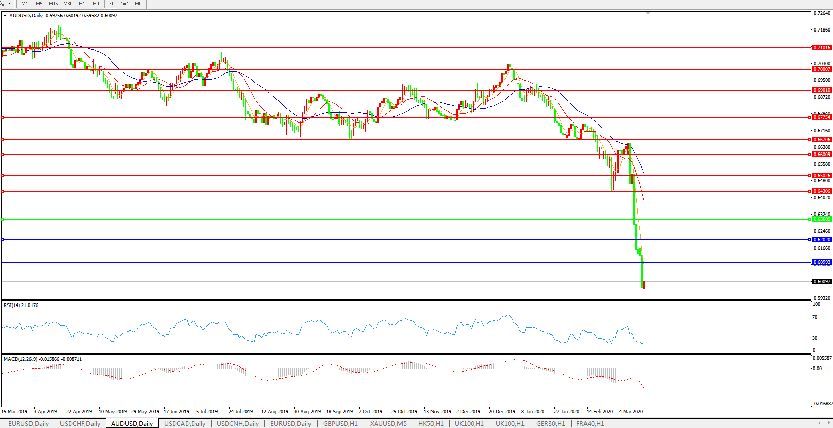 澳元兑美元AUDUSD 日线图: