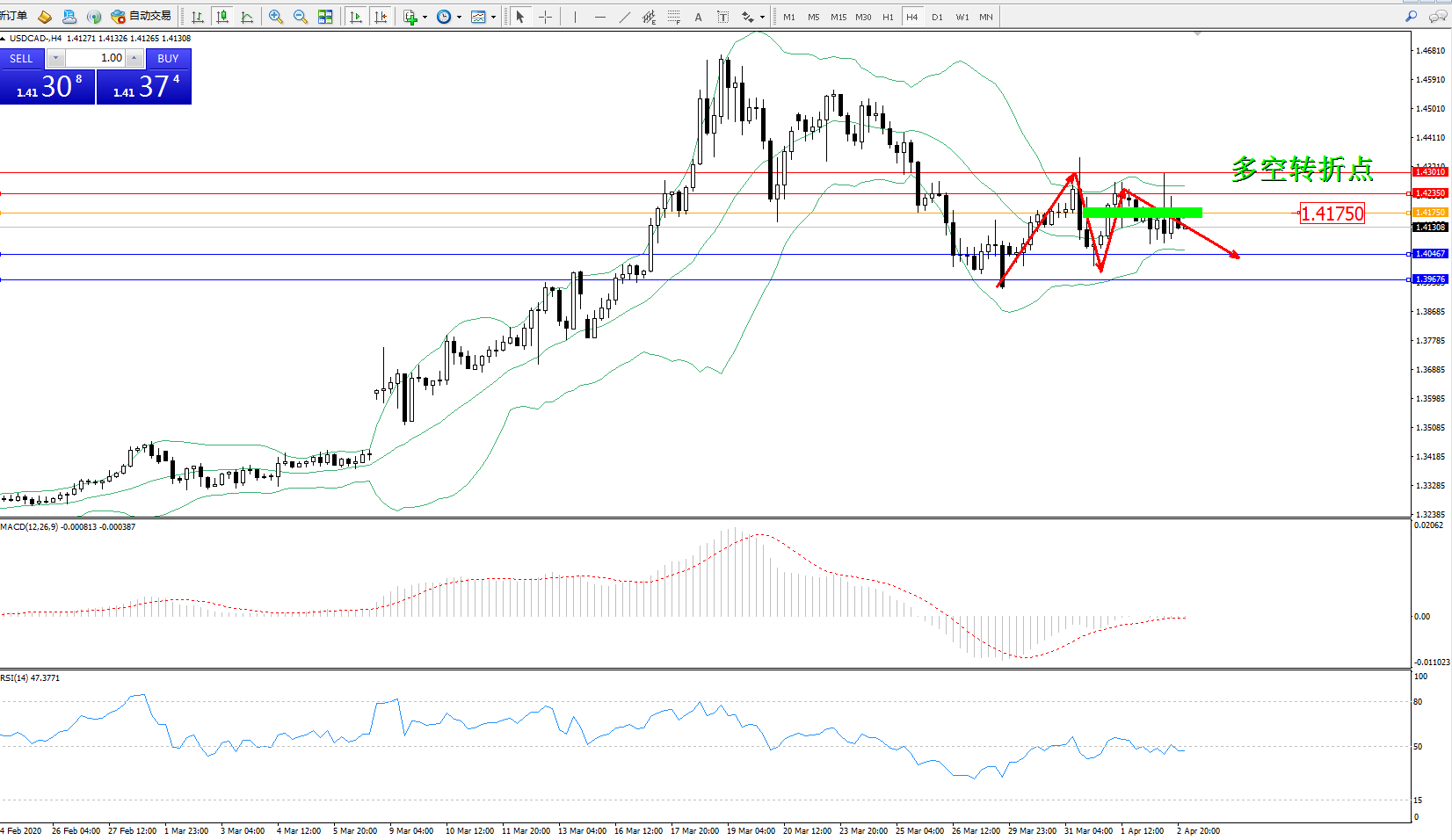交易策略:1.41750下方看跌,目标1.404671.39676
