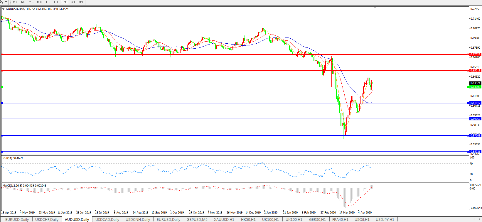 澳元兑美元AUDUSD    日线图: