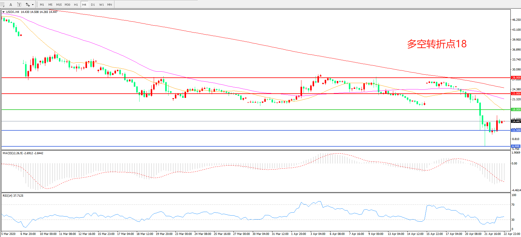 美国原油USOIL     4小时图